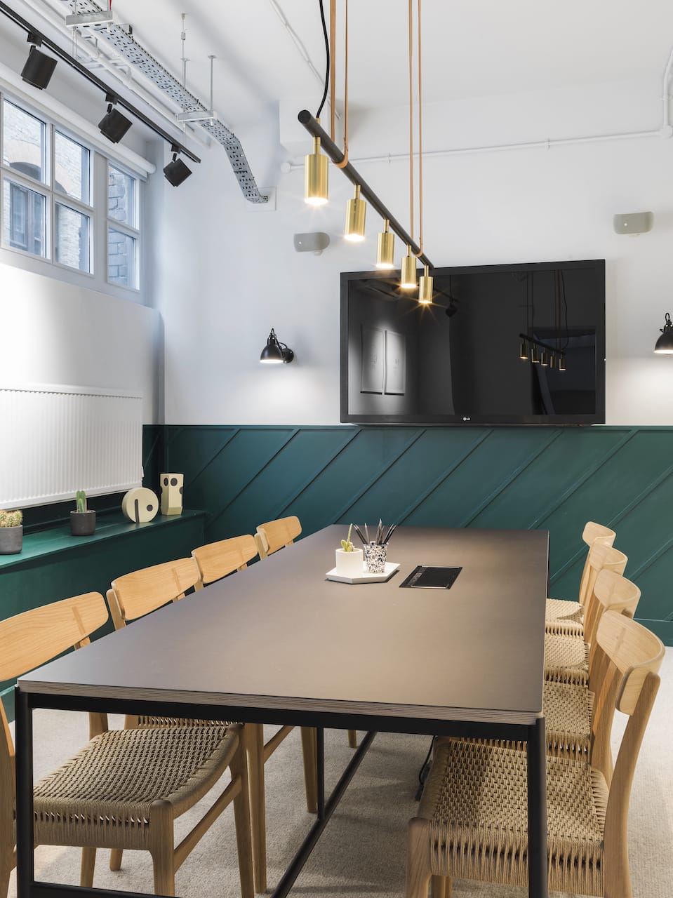 Designed with Shed. Refurbishment of Victorian warehouse in Farringdon for The Office Group. The new offering includes co-working space and meeting rooms, alongside private offices.